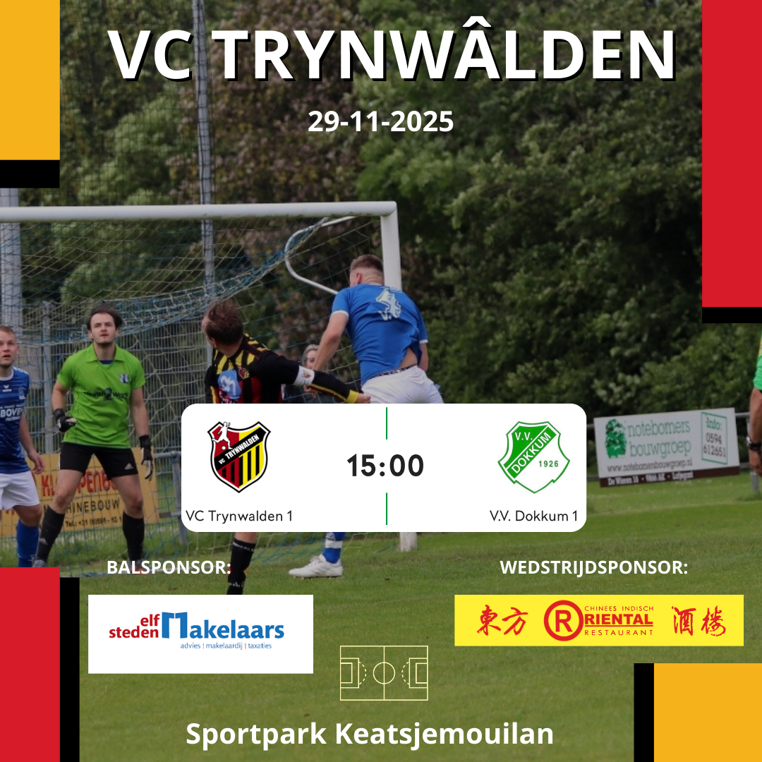 Aanstaande zaterdag wacht VC Trynwâlden een belangrijke wedstrijd tegen VV Dokkum. VCT gaat momenteel aan kop met 20 punten, terwijl Dokkum volgt op de vierde plaats met 18 punten. Het verschil is klein, waardoor deze wedstrijd bepalend is voor de stand bovenin.